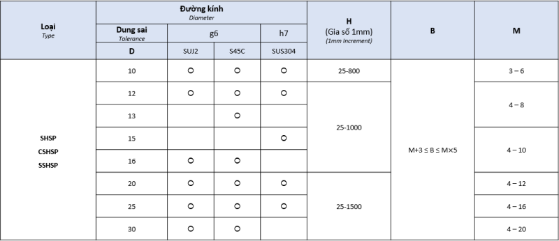 Các thông số kích thước sản phẩm có thể tùy chỉnh như bảng dưới: